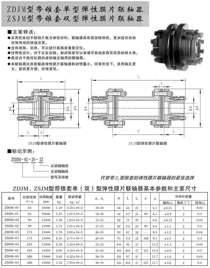 ZDJM型帶錐套單型彈性膜片聯軸器ZSJM型帶錐套雙型彈性膜片聯軸器