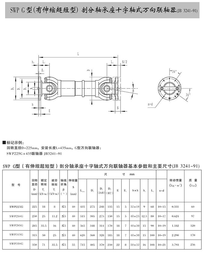 SWP G型(有伸縮超短型)部分軸承座十字軸式萬向聯軸器