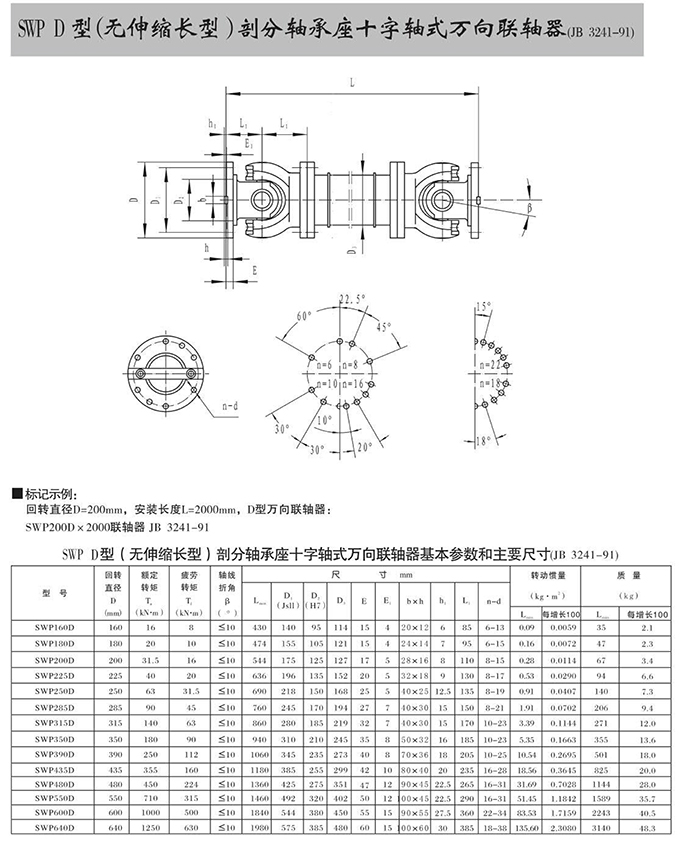 SWP D型(無伸縮長型)部分軸承座十字軸式萬向聯軸器
