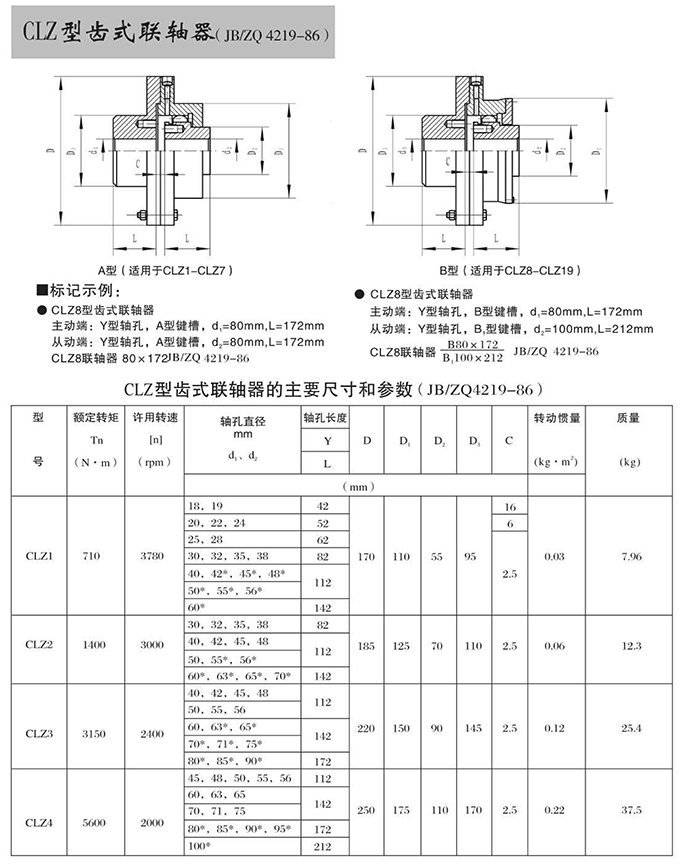 瑞安市寶德隆機(jī)械配件有限公司提供CLZ型齒式聯(lián)軸器具有拆裝方便,快速安裝等特點(diǎn),廣泛用于連接/固定輪轂孔和零件的軸,例如齒輪,錐齒輪,鏈輪,葉輪,凸輪,皮帶輪和飛輪等軸的聯(lián)結(jié)固定,咨詢(xún)電話(huà):18906872378